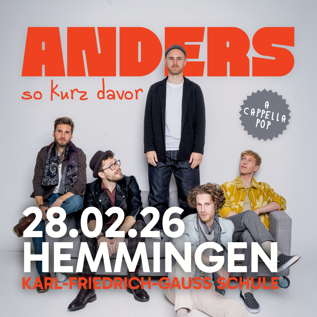 Sie kommen! Die 5 Sänger haben modernen A-Cappella-Pop-Sound im Gepäck. Hören Sie doch mal rein, was Sie erwartet. Das wird ein Abend, den man sich nicht entgehen lassen sollte – also schnell eine Eintrittskarte sichern. Eintrittskarten gibt es bequem über diese homepage unter Tickets, bei SchreibGut(h) in Arnum oder auch an der Abendkasse. Bitte beachten: Die Veranstaltung findet in der KGS Hemmingen, Hohe Bünte 4, statt.