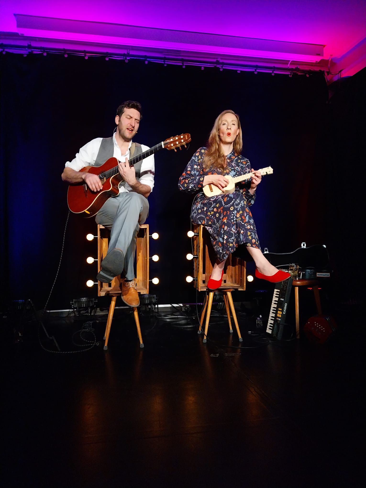 Wiebke Eymess und Fridolin Müller alias ‚Das Geld liegt auf der Fensterbank, Marie‘ zeigten im ausverkauften bauhof ihr gesamtes Können mit ihrem Programm ‚Glorreich versieben’. Da trifft feinsinniger Wortwitz auf sprachliche Akrobatik und clevere Komik auf scharfe Ironie; wortgewaltig und scharfzüngig, aber immer mit ganz viel Humor. Zudem sind die beiden fantastische Musiker, was sie eindrucksvoll mit Gitarre, Ukulele, Akkordeon und Minikeyboard unter Beweis stellten. Das macht einfach Spaß und begeistert! Das Publikum verabschiedete das Duo am Ende des Abends daher auch mit ganz viel Applaus und erst nach 2 Zugaben.